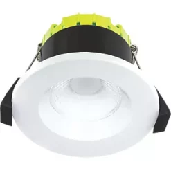Contemporary design, dust and weatherproof round decorative bulkhead with polycarbonate housing, suitable for use in kitchens and bathrooms. Easy and quick installation, with push-fit terminal block for wall or ceiling mounting. Also suitable for hallways. Supplied with interchangeable twist-on and off white and polished chrome bezels for classic or decorative finishes and a colour change driver.